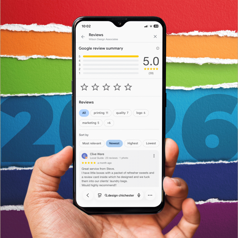 For a small, independent design studio like ours, Google reviews genuinely make a difference. They help people find us, reassure them they’re in safe hands, and give a sense of the care and attention that goes into every project – whether that’s a full brand identity or a single piece of print.